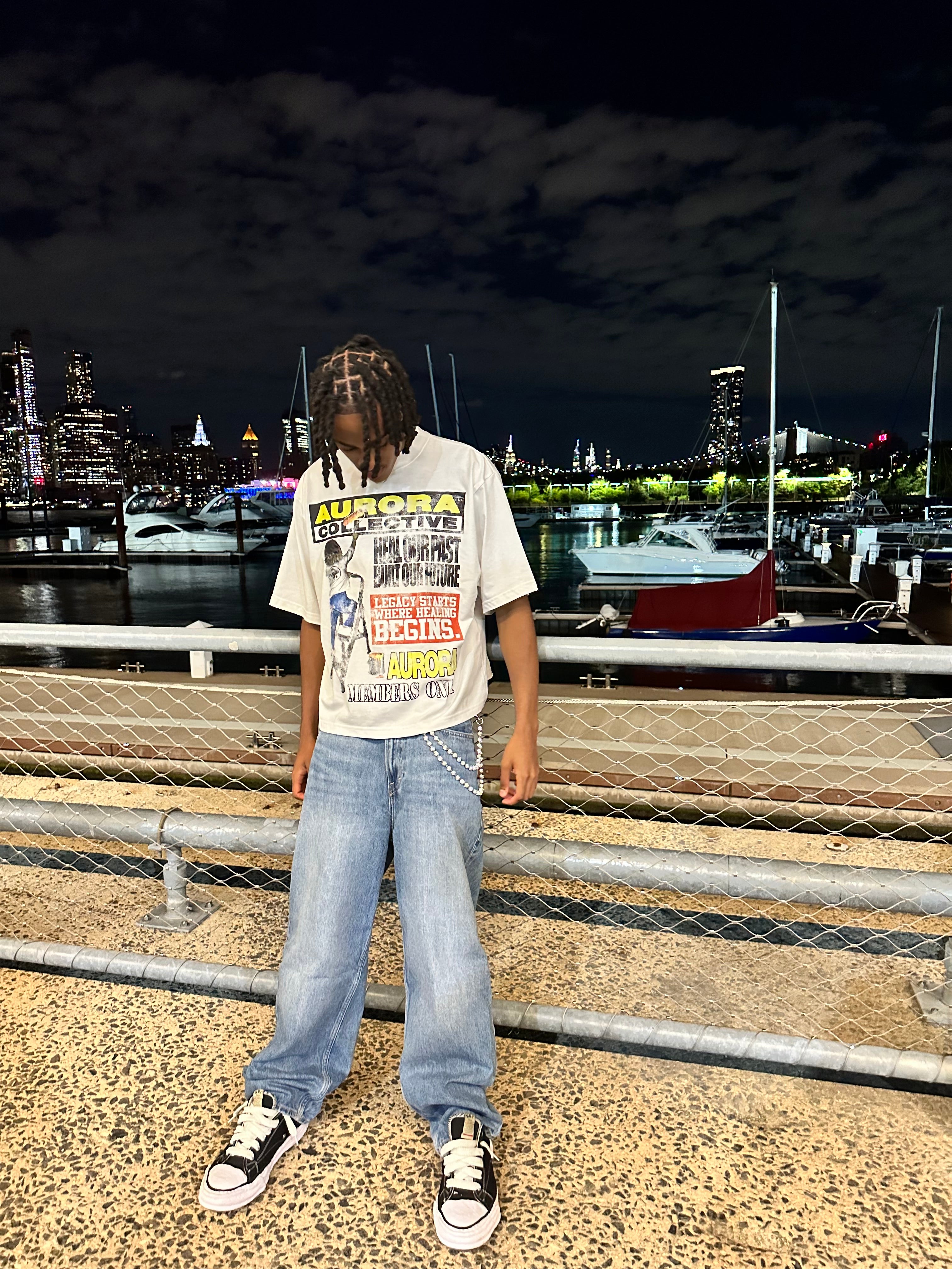 Presented by Aurora Collective, THE DREAM PAINTER TEE. “This is more than just a shirt—it’s a canvas for our story. The Dream Painter Tee is for the youth rewriting the future of NYC, honoring our past while building the legacy ahead. Every brushstroke reminds us: healing starts with us, and our culture is the foundation. Oversized fit